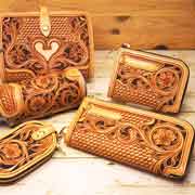 何千回と刻印を打ち込み仕上げたレザーカービング(革の彫刻)の作品を制作しています。