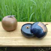 私の自慢の逸品は、春の筍、夏の茄子、秋の柿栗、冬の洋梨など新潟県の四季を表したお茶入れです。