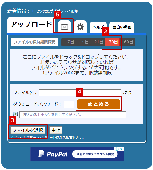 - ギガファイル便にアクセスします。